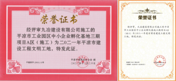 中小企業(yè)孵化基地(三期)項(xiàng)目A區(qū)喜獲省市級(jí)“文明工地”稱號(hào)