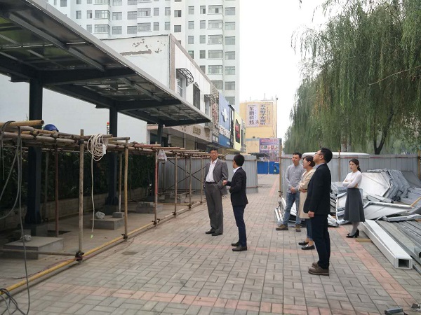 2017-08-158月14日,公司黨委委員、副總經(jīng)理于彥輝帶領(lǐng)公司綜合辦公室、項目辦公室、房地產(chǎn)公司、新能源公司、廣告?zhèn)髅焦緳z查公司重點項目建設(shè)工作。圖為定北路充電站項目建設(shè)現(xiàn)場檢查組先后深入定北路充電站項目、馬坊路道路工程項目、供熱工程項目現(xiàn)場,實地查看了項目建設(shè)